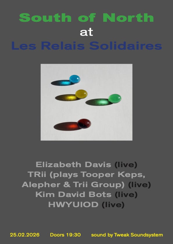 For the rest of the month I’ll be on tour with South of North labelmates Kim David Bots and Trii. Those dates are: